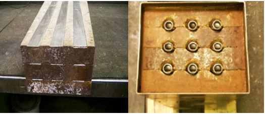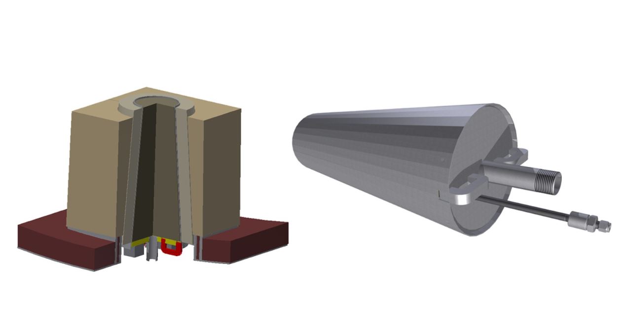 Schlittzspüler in der Produktion links Röhrcheneinbau, rechts Rückseite nach Einbau in den Stahlmantel