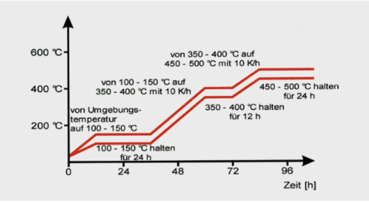 Der Temperaturverlauf beim An-/Aufheizen wird in der Regel in sogenannten Aufheizkurven grafisch dargestellt.