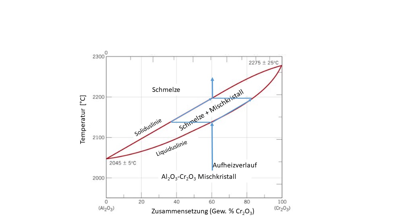 Die Liquiduslinie beschreibt in heterogenen Systemen die Temperaturen bei der sich in einem Feststoffgemisch die erste flüssige Phase bildet. Soliduslinie