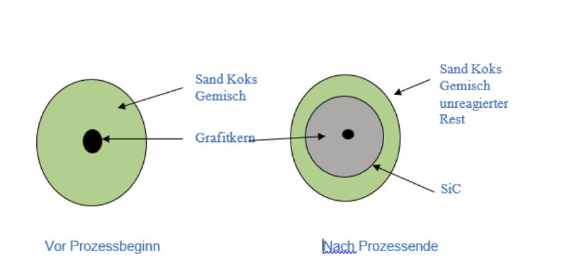 1892 erfand der US-amerikanische Physiker E. G. Acheson eher zufällig, bei der Suche nach einer Möglichkeit synthetische Diamanten herzustellen, ein Verfahren zur Erzeugung von technischem SiC. Um einen Grafitstab wird eine Schüttung aus (SiO2) Quarzsand und Koks aufgebracht und vor jedweder Sauerstoffzufuhr abgeschirmt. Durch Anlegen einer elektrischen Spannung an den Grafitstab wird das System durch Widerstandsbeheizung auf eine Temperatur von ca. 2500 °C gebracht. Hierbei entsteht reines SiC gemäß: